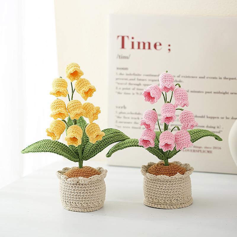 Готовый ручной работы вязаный крючком ландыш горшечный декор для дома пряжа плетение имитация цветка настольный бонсай