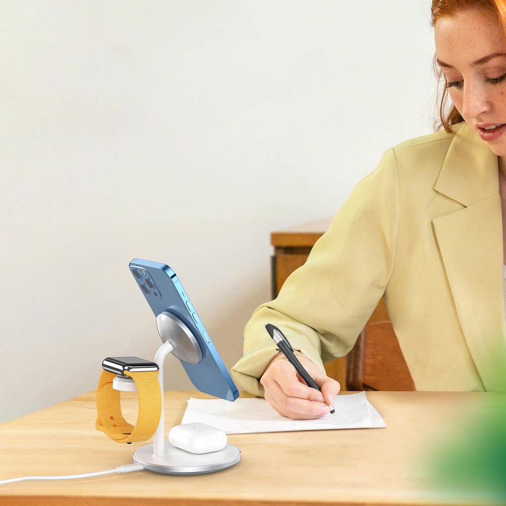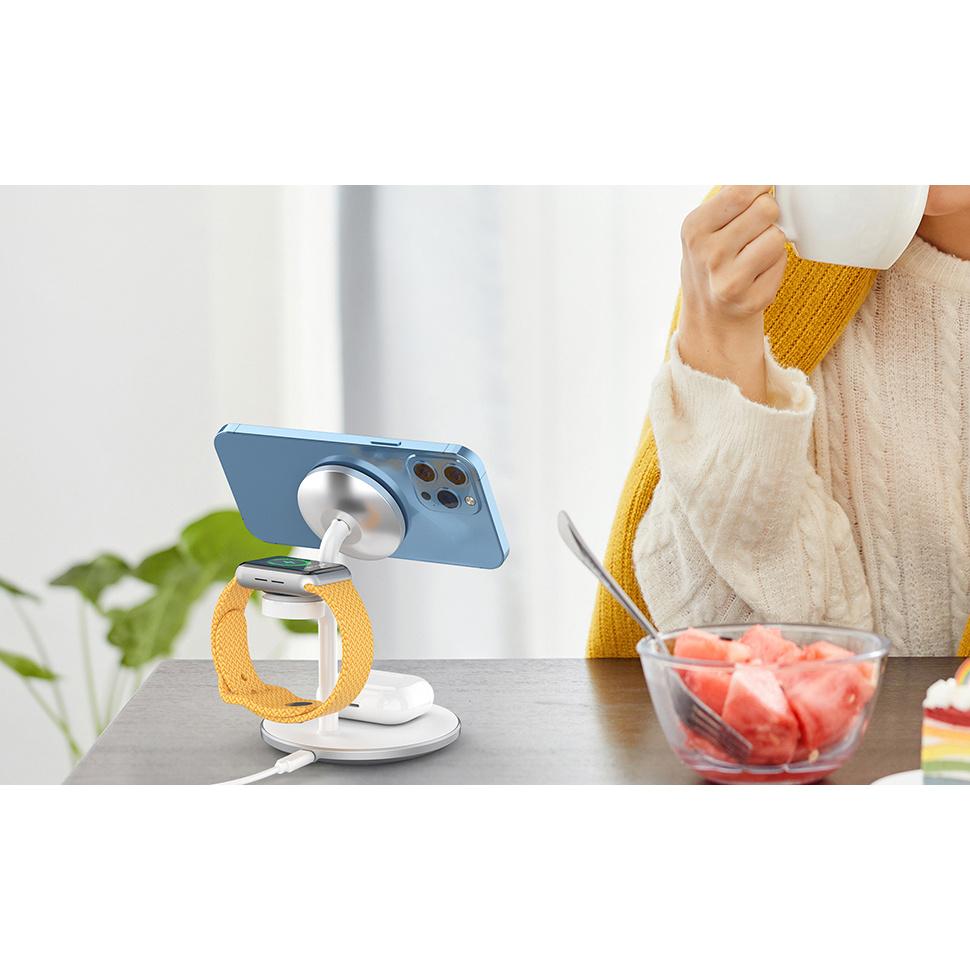 Индукционное зарядное устройство Choetech (совместим с MagSafe) подставка для iPhone, Apple Watch, AirPods белая (Т585-Ф)