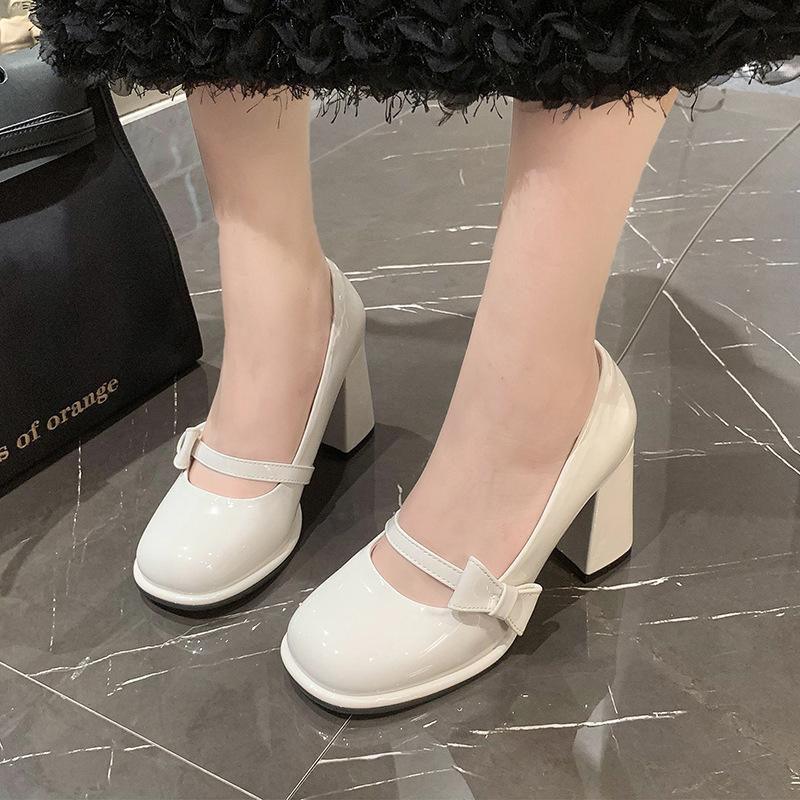 Модные женские туфли на высоком каблуке 2025 года, весна и осень, женские туфли Мэри Джейн на толстом каблуке, туфли Zapatos Mujer, слипоны, банты, украшения, женские туфли-лодочки