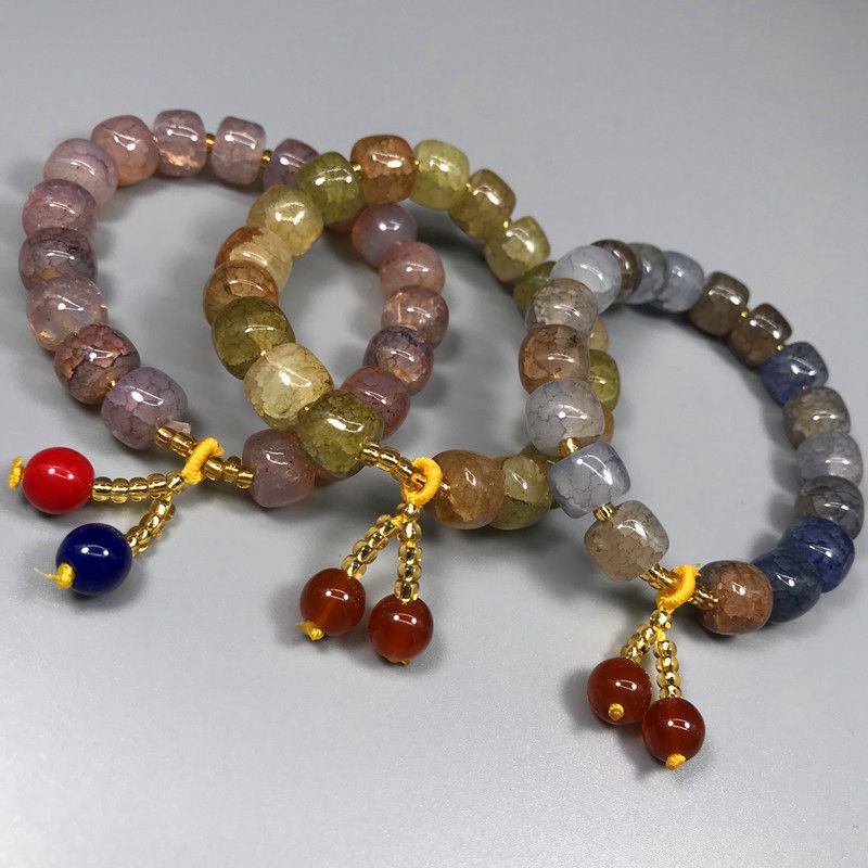 Винтажная бусина-бочка, маленькая подвеска, многоцветный браслет, бусина с трещинами, сверкающая