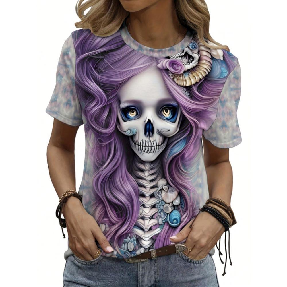 Женская футболка с коротким рукавом и принтом скелета на Хэллоуин