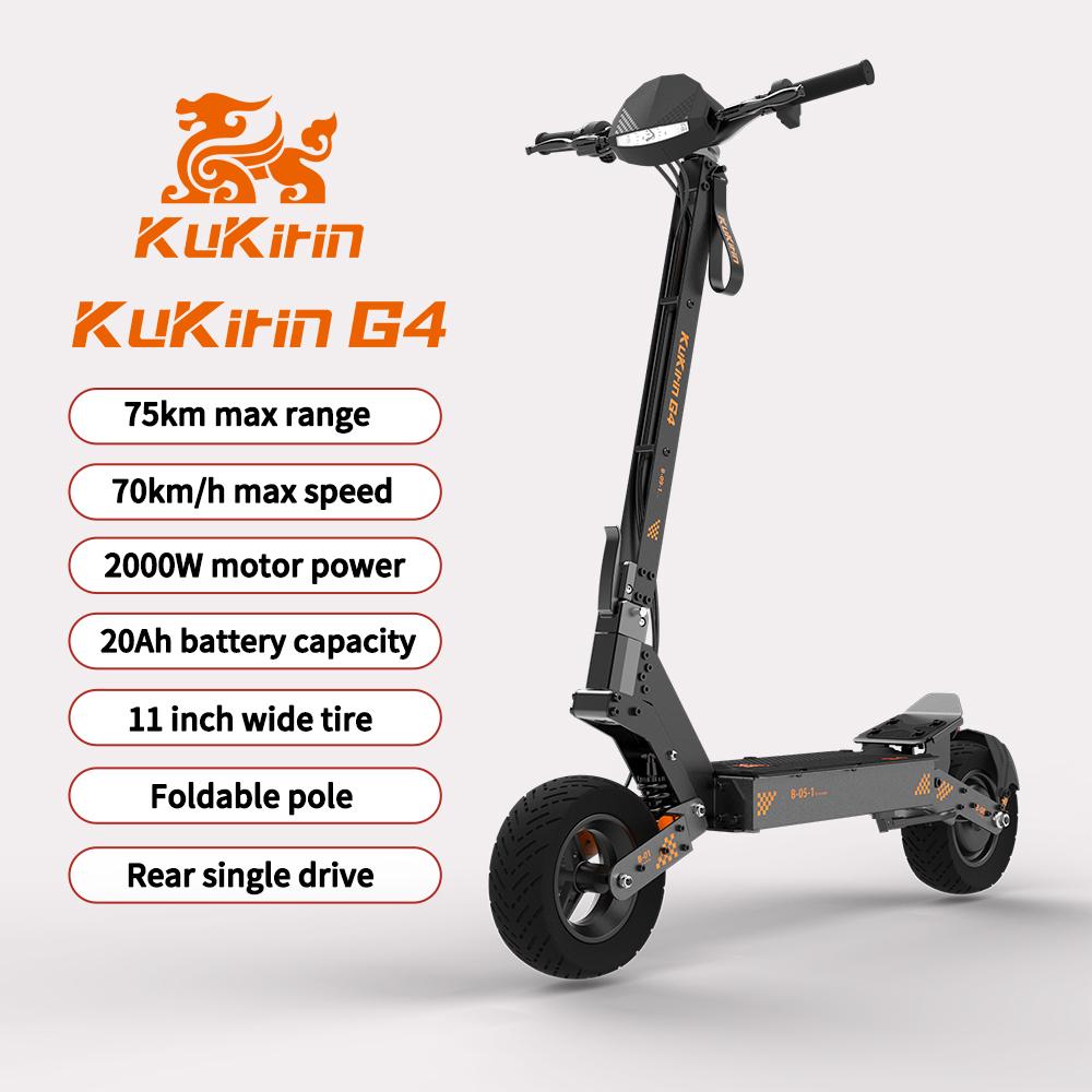 KuKirin G4 использует сверхмощный интегрированный мотор-колесо мощностью 2000 Втч с максимальной скоростью до 70 км/ч.. В двигателе используется двойная система охлаждения для поддержания производительности в течение более длительного периода времени..