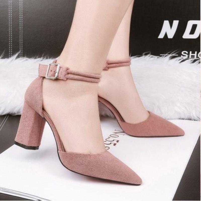 Модные туфли на высоком каблуке с квадратной пряжкой для женщин 2024 года, новые туфли с острым носком и неглубоким толстым каблуком для женщин Tacones Para Mujer, горячая распродажа