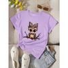 Женская летняя повседневная футболка с круглым вырезом и коротким рукавом с принтом мультяшной совы
