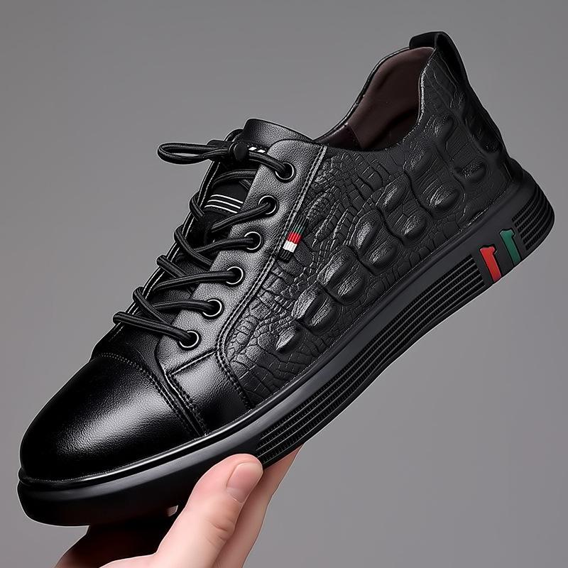 Новые мужские повседневные туфли из натуральной кожи, мужские туфли для скейтбординга с крокодиловым принтом, классные кроссовки без застежек