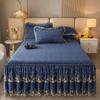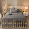 Современный стеганый комплект из кружевной клетчатой юбки с наволочками - 3 предмета, мягкий, удобный, дышащий, однотонный дизайн для спальни