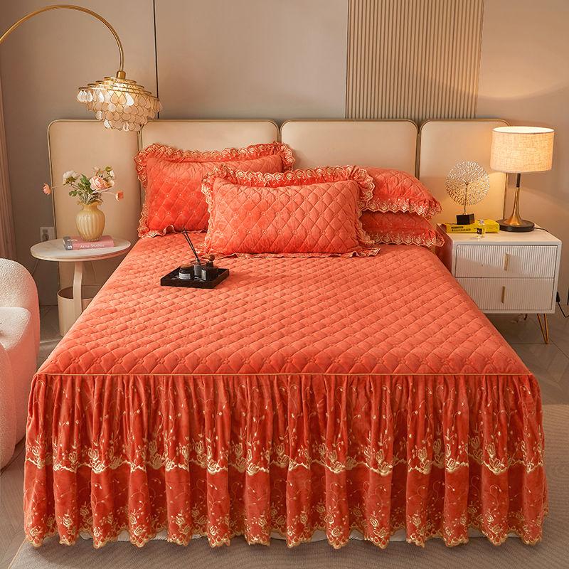 Современный стеганый комплект из кружевной клетчатой юбки с наволочками - 3 предмета, мягкий, удобный, дышащий, однотонный дизайн для спальни — купить товар онлайн с бесплатной доставкой по всему миру!
