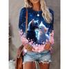 Женский 2024 рукава сшитые лиса принт круглый вырез длинный рукав вечерние осенние повседневные пуловеры 3d печать повседневные модные топы