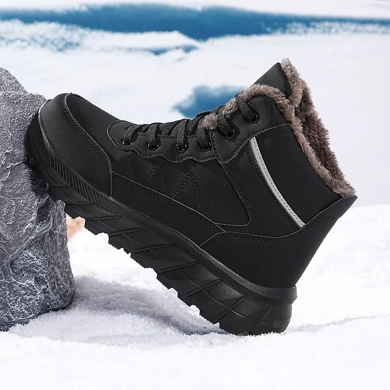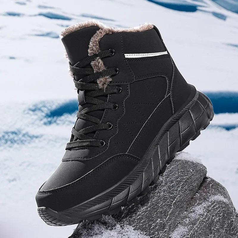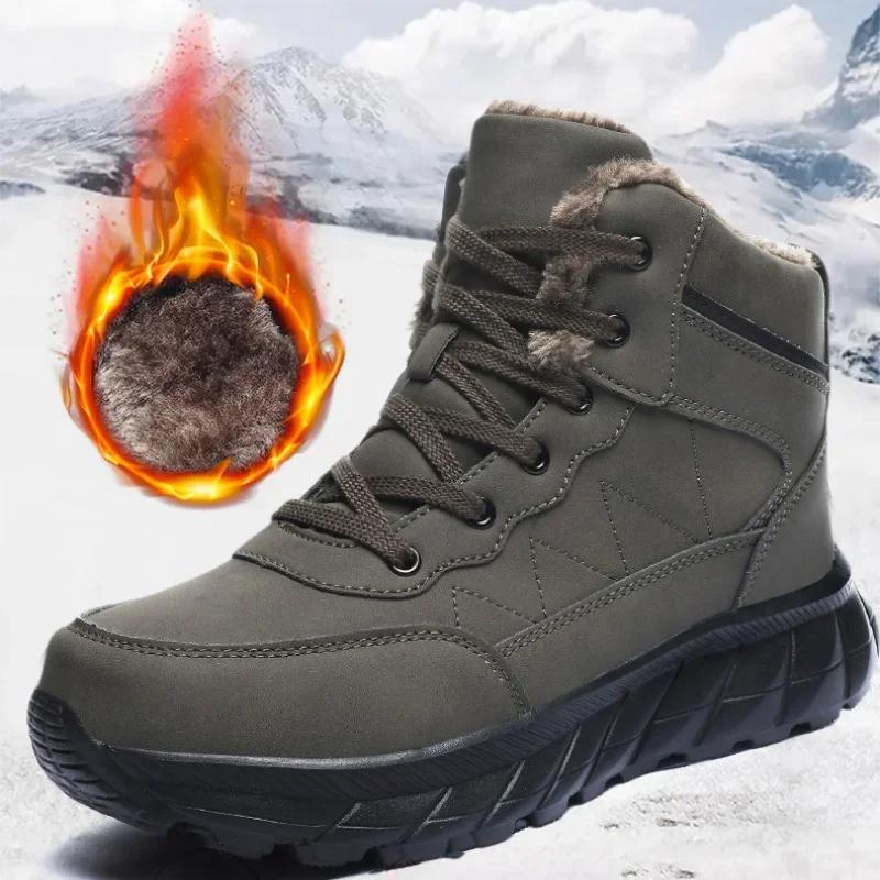 Модные зимние мужские ботинки, походная обувь для мужчин, плюшевые теплые кожаные походные скальные ботинки, водонепроницаемые зимние ботинки, нескользящие ботинки по щиколотку