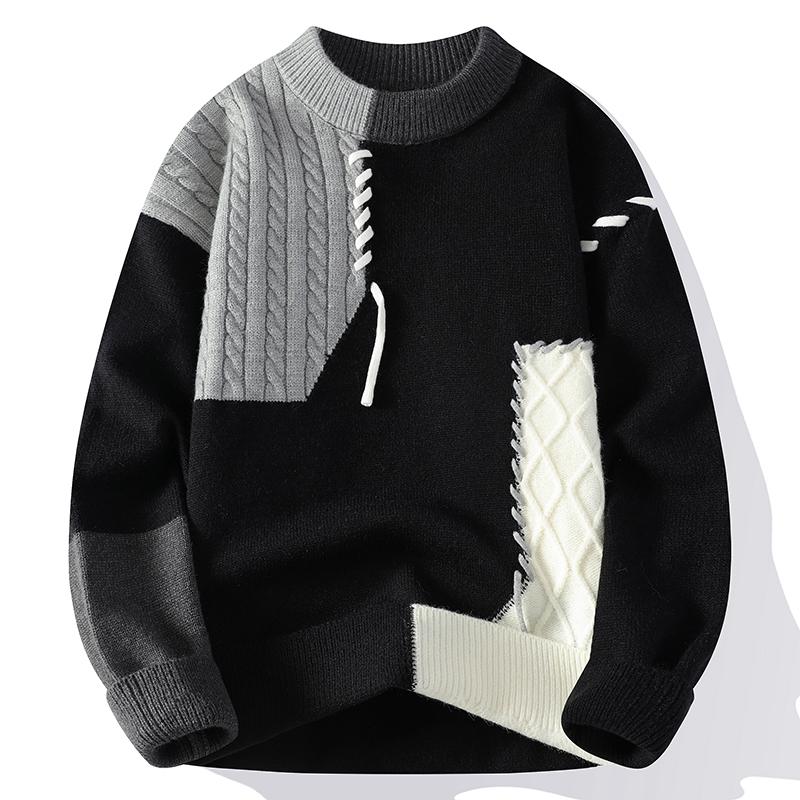 Мужская одежда Фонарь Длинный рукав Круглый вырез свитер Вязаный Повседневный Контрастный цвет Осень Зима Модный шнурок Стильные топы