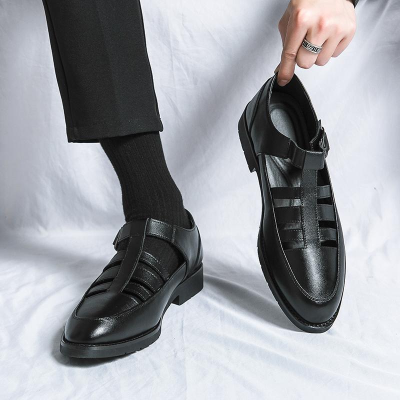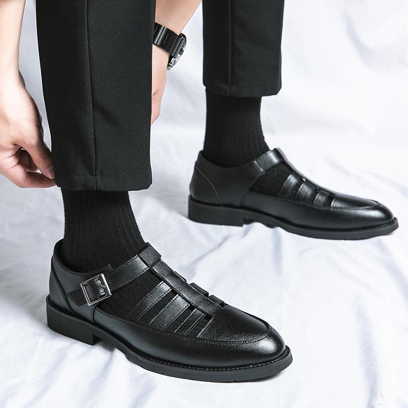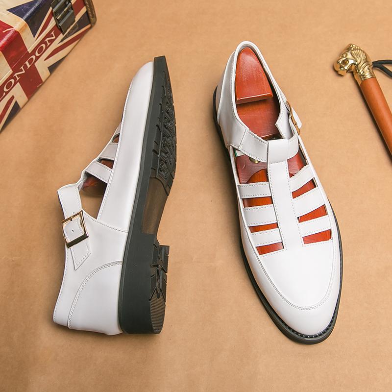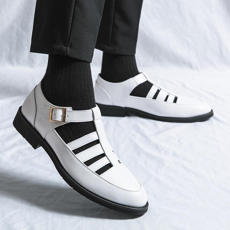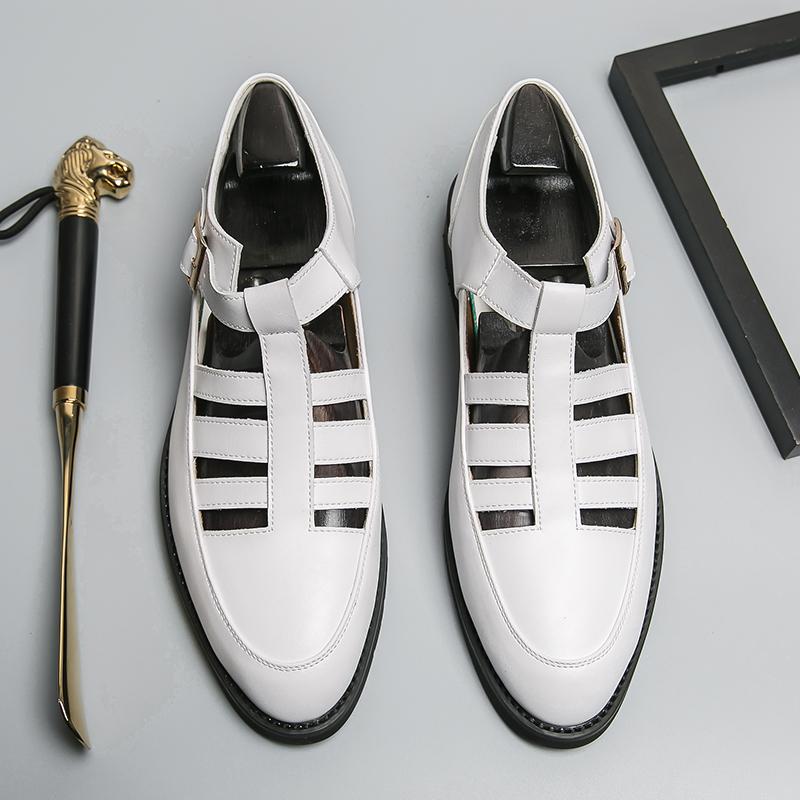 Модные мужские сандалии из коровьей кожи черного/белого цвета 2024 Лето Новое поступление Премиальная кожа Легкие Дышащие Удобные Пляжные Дизайнерские Сандалии