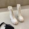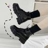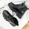 Модные женские мотоциклетные ботинки на танкетке, туфли на плоской подошве, женские весенние ботильоны на высоком каблуке и платформе, кожаные осенние ботинки, обувь на шнуровке, черные ботинки на платформе для девочек