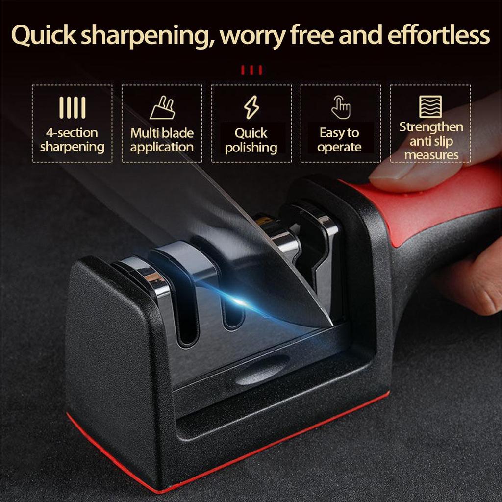 Четырехступенчатая точилка для ножей: Быстрая заточка кухонных ножей и ножниц за 5 секунд с тонкой заточкой и универсальным уходом за лезвиями.
