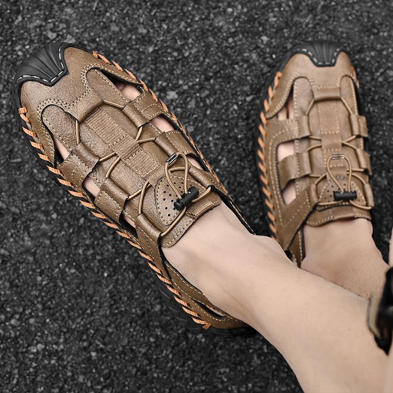 Модные летние мужские новые дышащие сандалии ручной работы из коровьей кожи Модные мужские уличные удобные и нескользящие пляжные туфли бренда Baotou