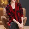 Весна и осень новый женский свободный кардиган в стиле вестерн топ жаккардовый цветной блок свитер с V-образным вырезом