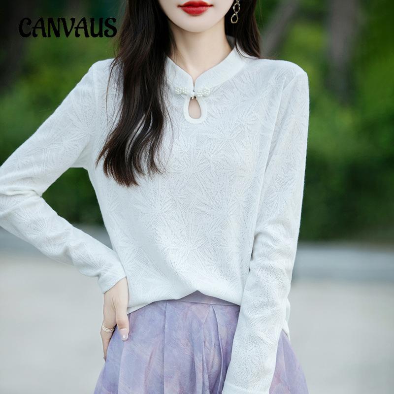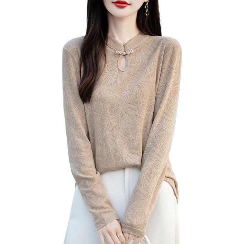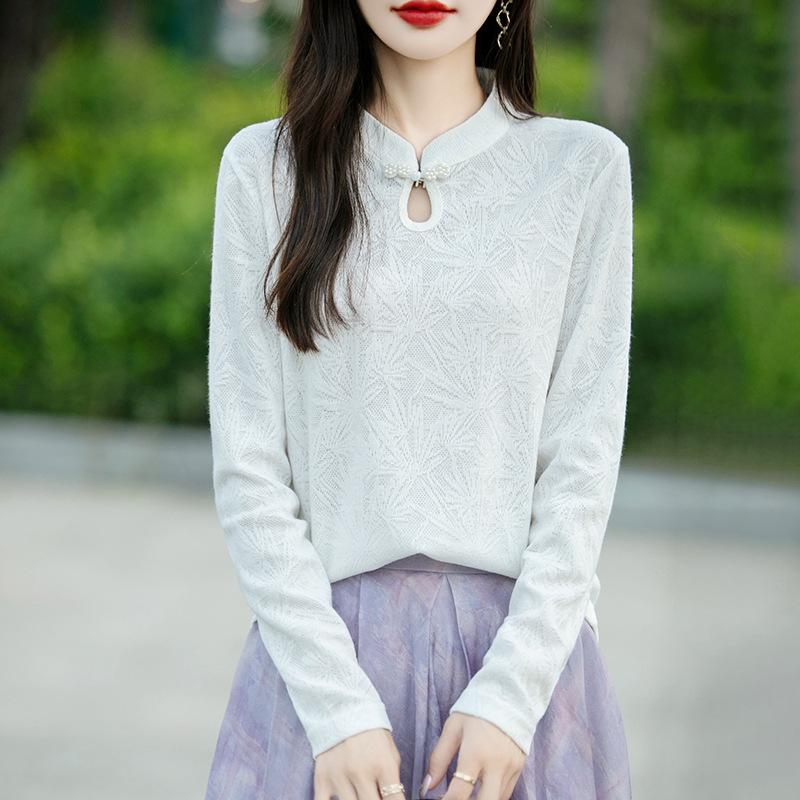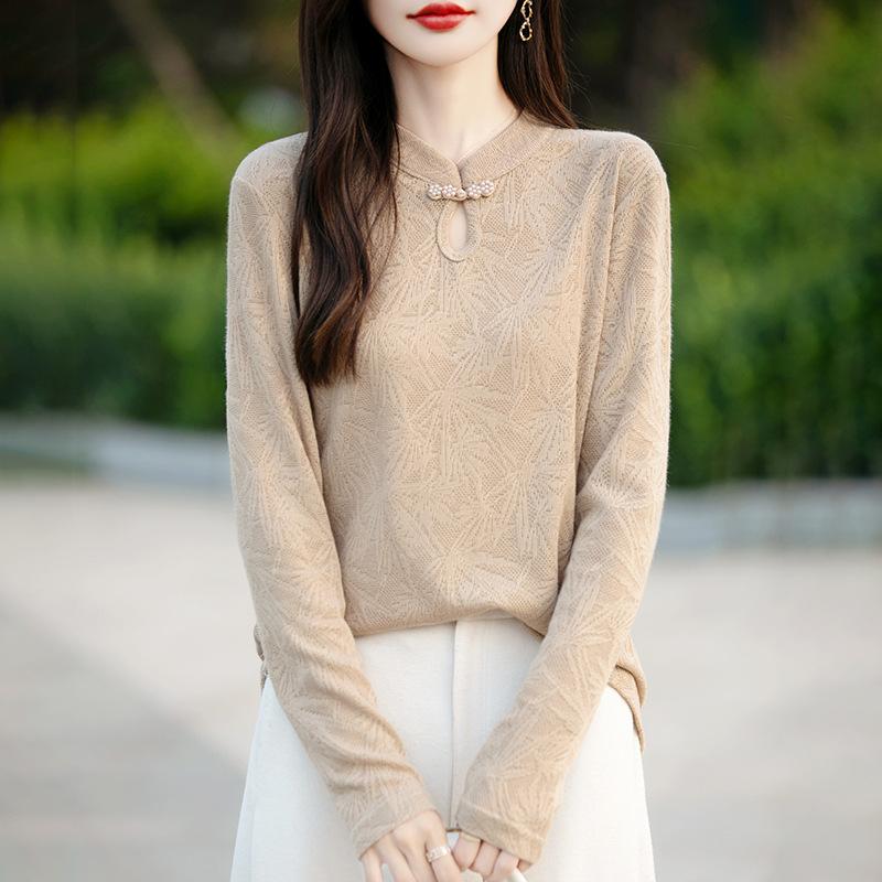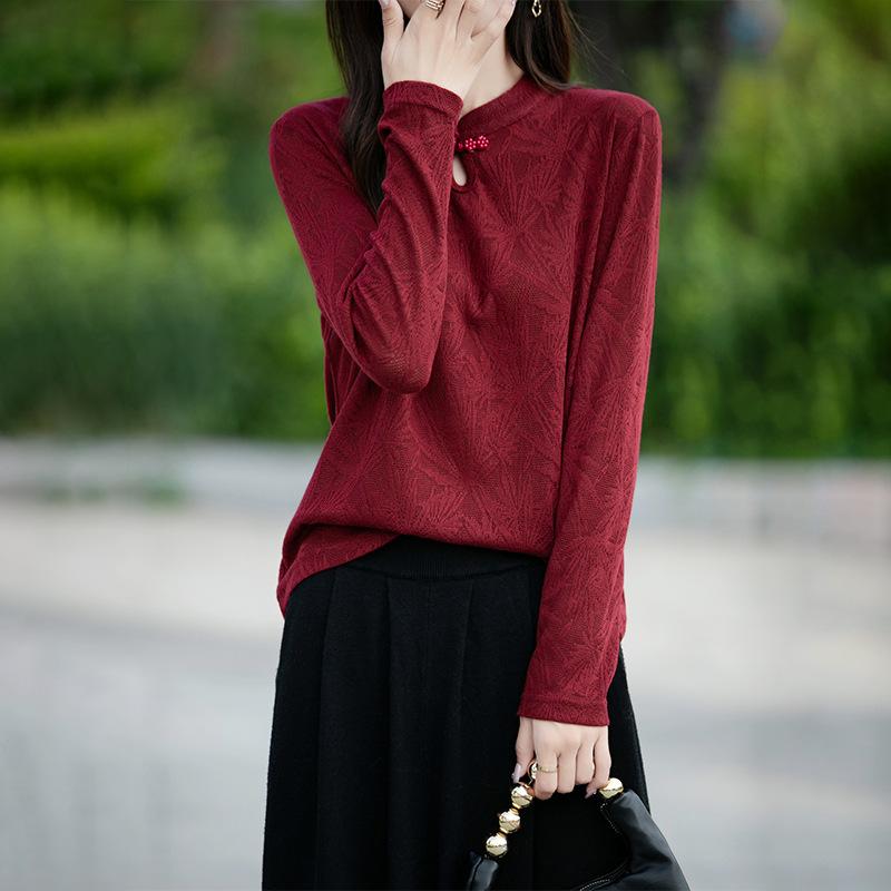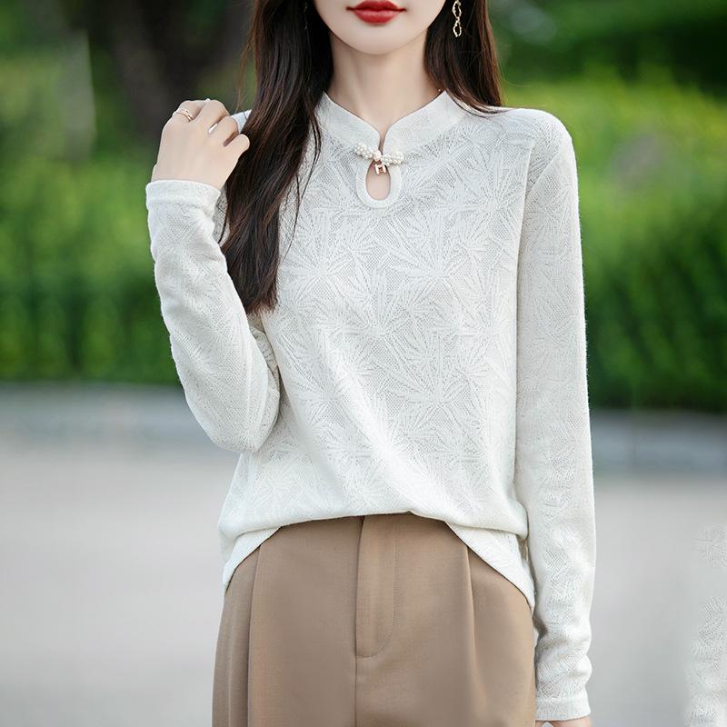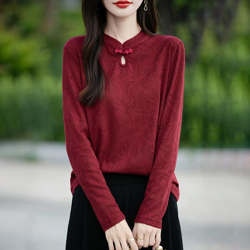 Осень и зима Новый китайский Женский трикотажный топ с пуговицей на пластине Мягкая рубашка в стиле ретро