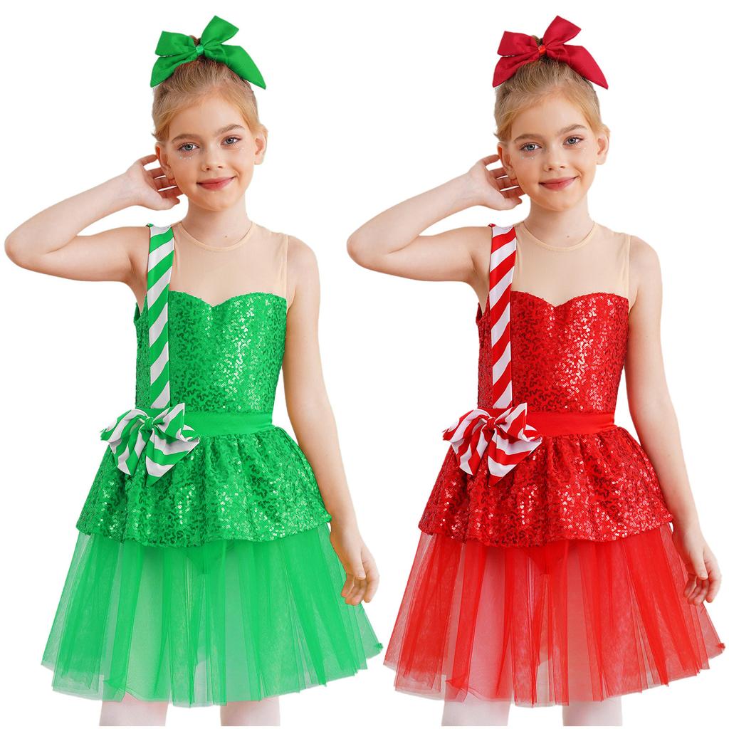 Девушка Рождественский карнавальный костюм для косплея на вечеринку в виде леденца Рождественский безрукавный купальник с блестками и полосками для фигурного катания на льду