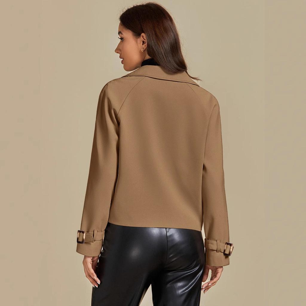 GMXIA Женские винтажные повседневные однотонные принтованные куртки и пальто с длинным рукавом и воротником-поло на весну и осень