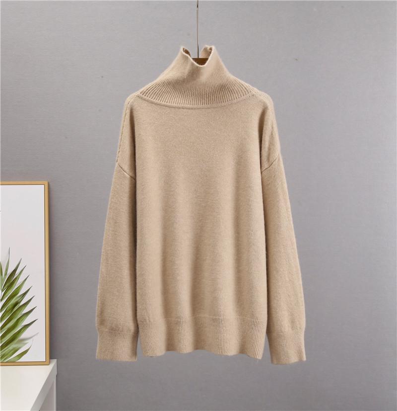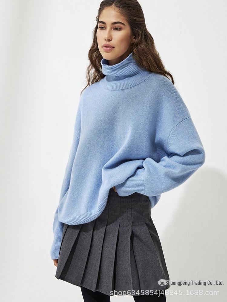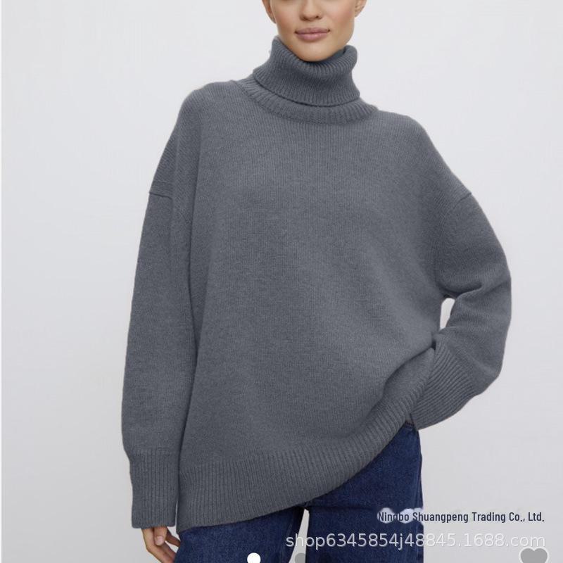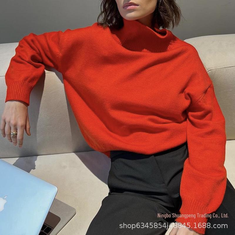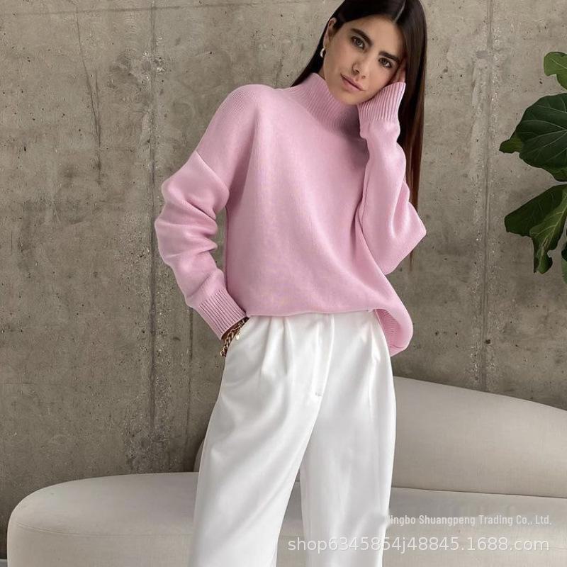 Женские свободные вязаные свитера с высоким воротом осень/зима 2024 года — разноцветные, в европейском и американском стиле
