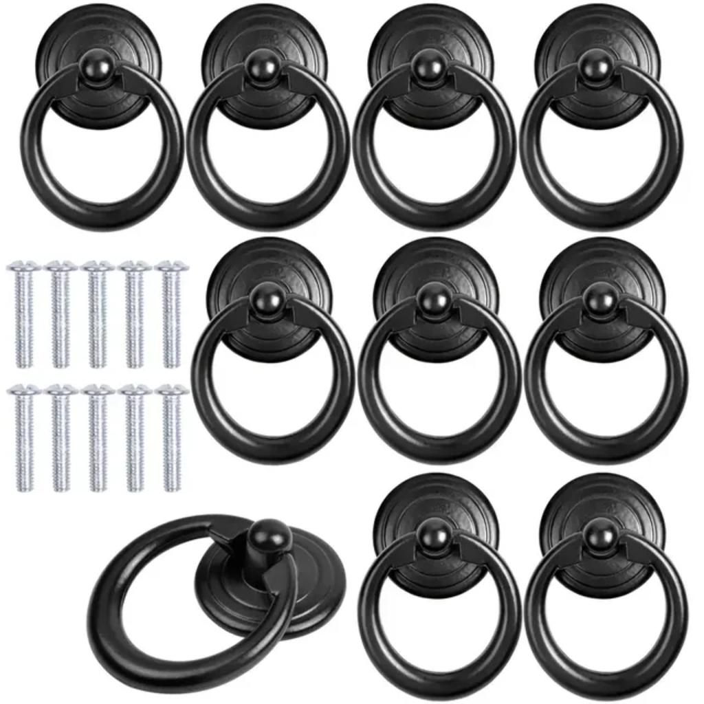 6 шт. черные ручки-кольца, ящик из цинкового сплава, круглая капля — купить товар онлайн с бесплатной доставкой по всему миру!
