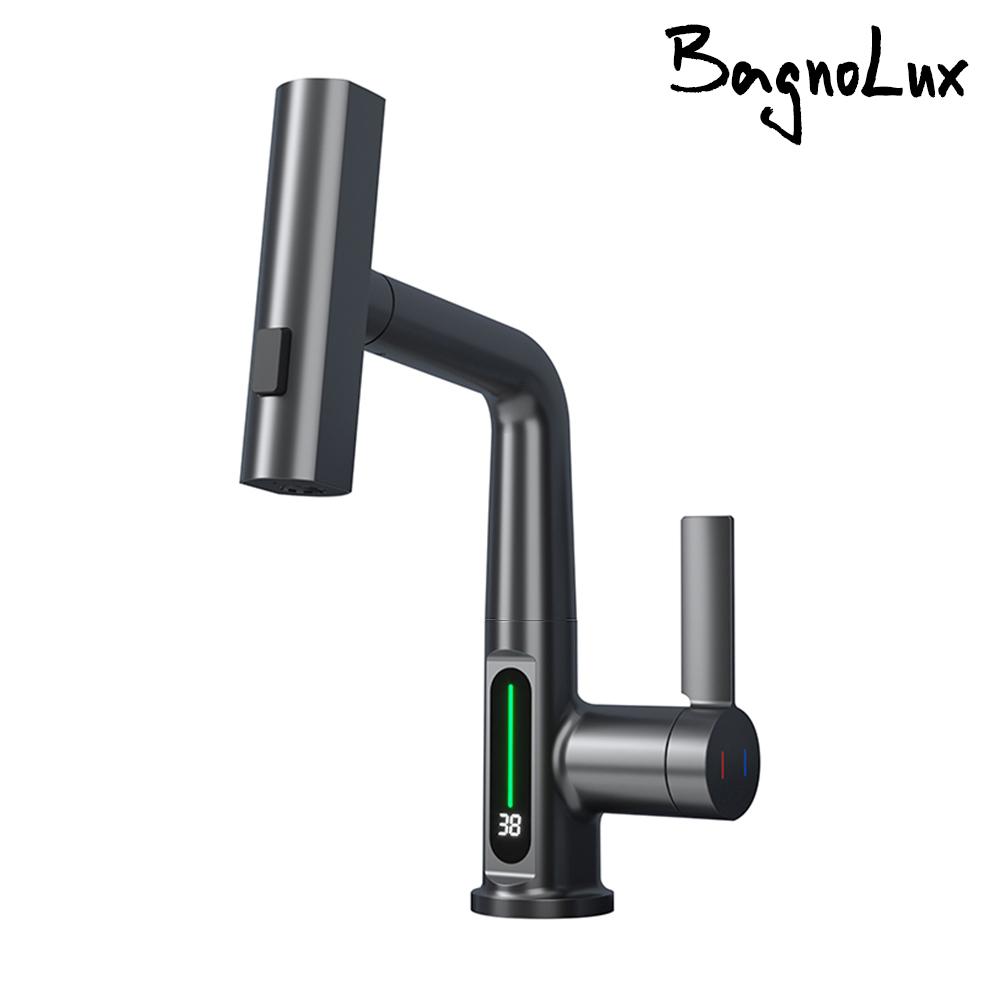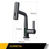Цифровой дисплей кран матовый золотой кран для раковины горячий и холодный выдвижной смеситель водопад вода 3-ходовой кран для мойки монтируется на бортике