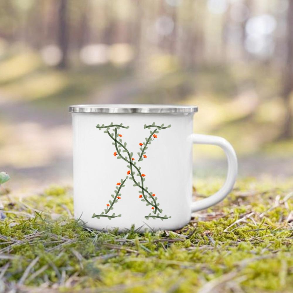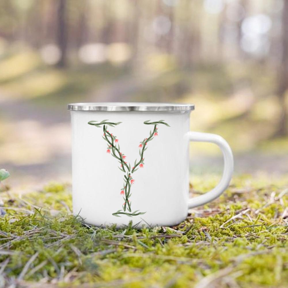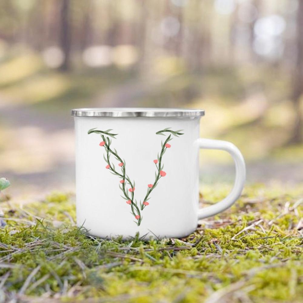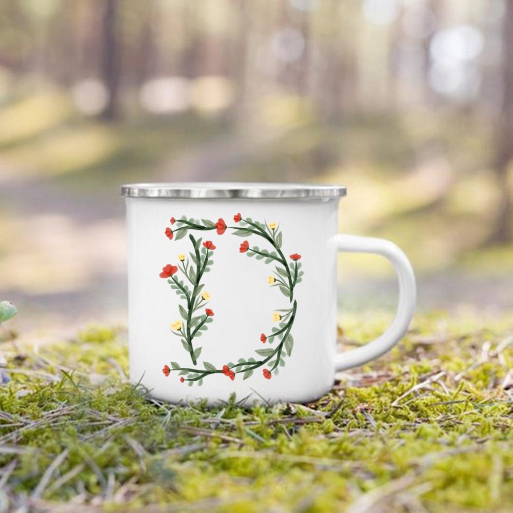 Эмалированная чашка с цветочным алфавитом и ручкой для кемпинга, кружки для кофе и чая, праздничные кружки для дня рождения, кемпинга, костра, лучшие оригинальные и забавные подарки