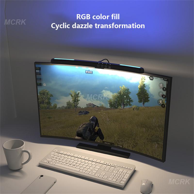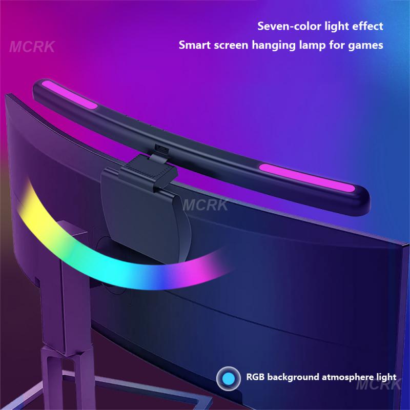 Световая панель для монитора компьютера, бесступенчатая регулировка яркости, сенсорный переключатель, лампа для монитора, светодиодная 7-цветная атмосферная лампа для компьютерных игр, USB-светильник