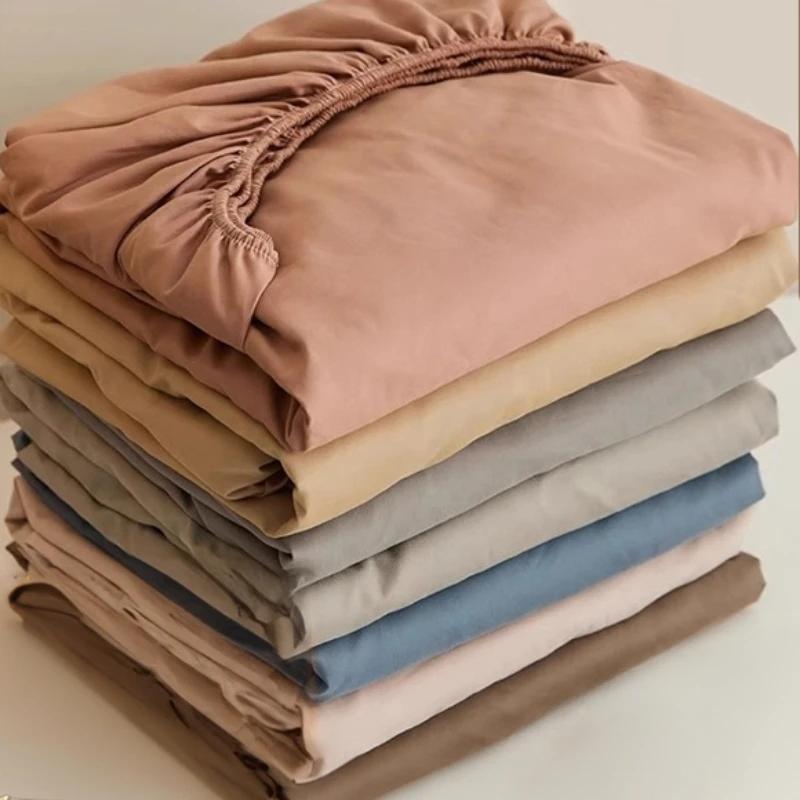 Простыни на резинке Однотонные Нескользящие Простые Спальня Размер Queen Выстиранные Удобные Нежные Прочные Антибактериальные Современный Наматрасник