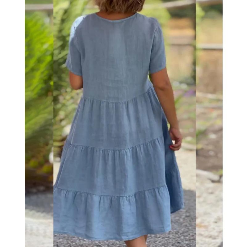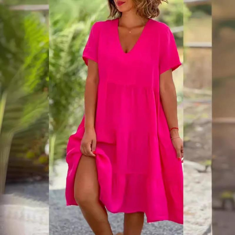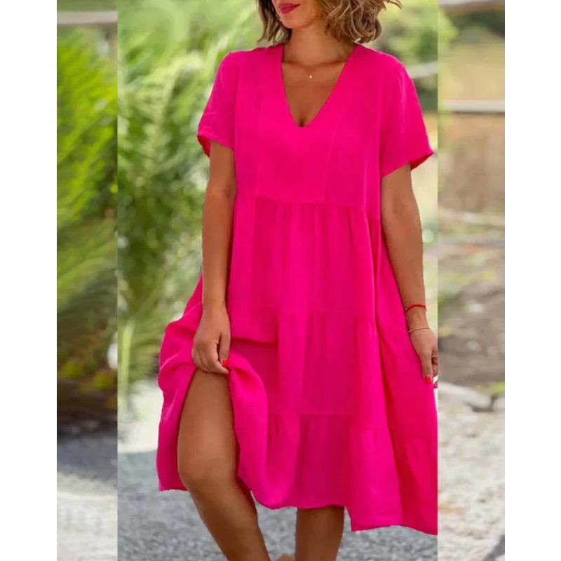 Летнее женское свежее милое однотонное повседневное платье с V-образным вырезом большого размера