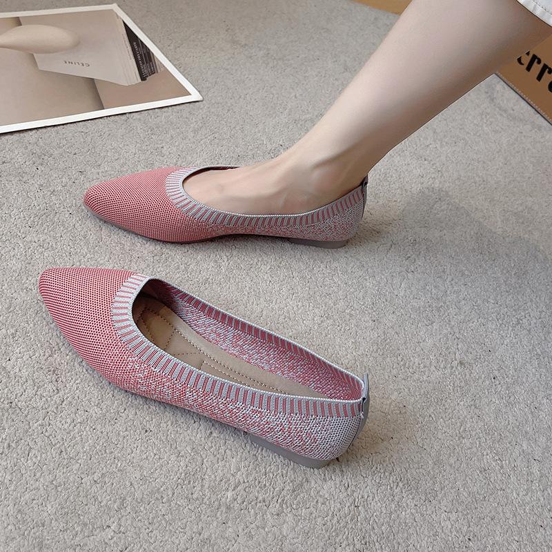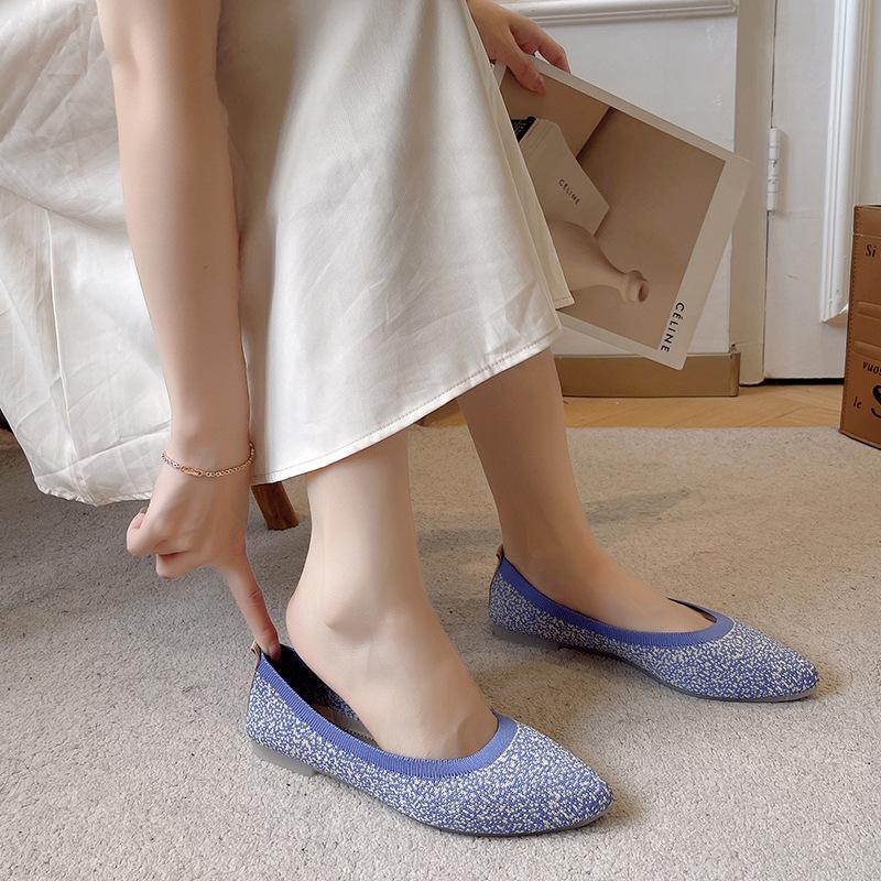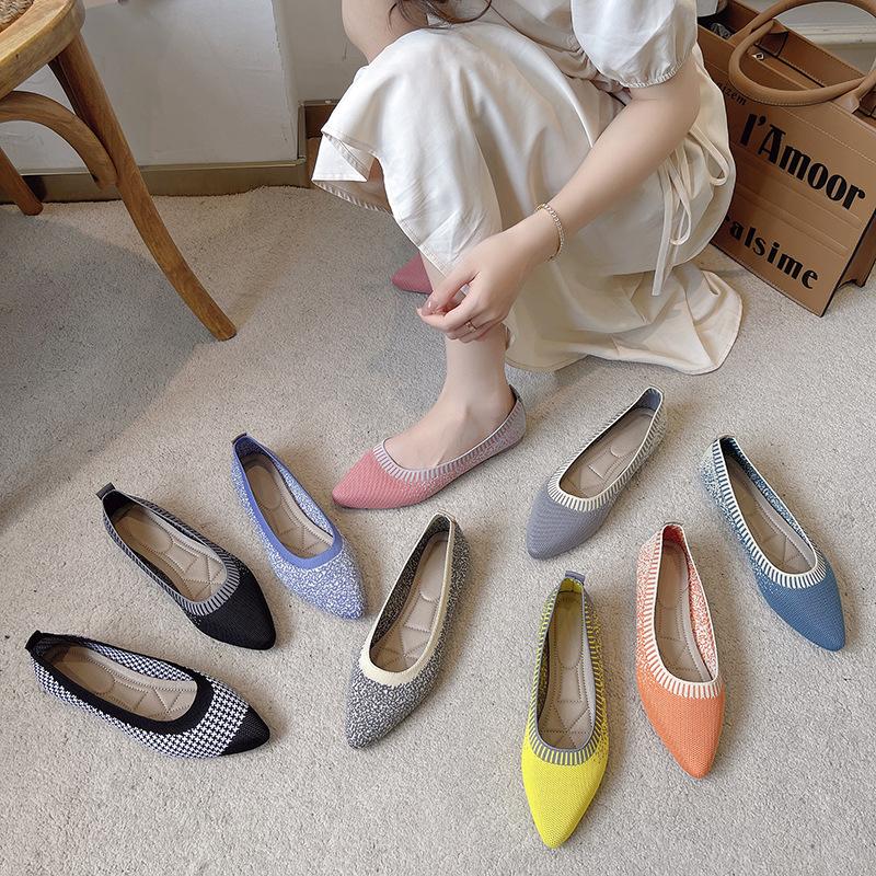 Модная весенне-летняя обувь Женская обувь на плоской подошве с острым носком Туфли из ткани Повседневная обувь Балетки без застежек Мягкие удобные A4658