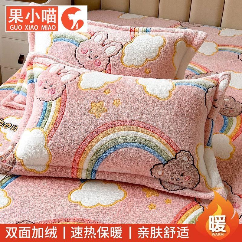 Наволочка из молочного волокна с принтом клубники, милая, кавайная, мягкая, пушистая, 48x74 см, осенне-зимняя, сохраняющая тепло, домашний текстиль, бытовая, утолщенная
