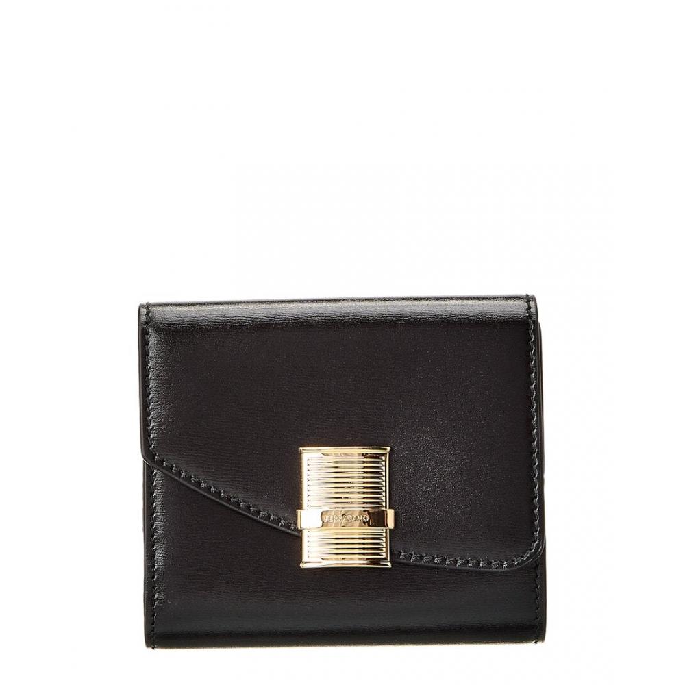Salvatore Ferragamo Ferragamo Fiamma Leather Compact Wallet Black