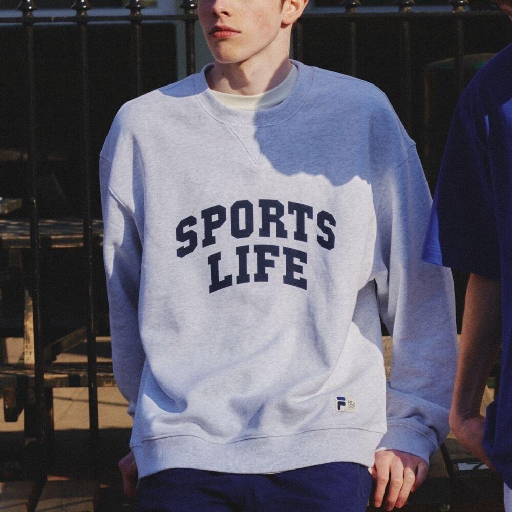 Это толстовка SPORTS LIFE, предложенная для сезона 23SS. Вес материала немного снижен, чтобы соответствовать сезону SS, поэтому вы можете носить ее с большим комфортом. Я акцентировал ее дугообразным логотипом.