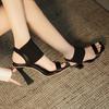 Модные черные вышитые сандалии на среднем каблуке женские летние универсальные элегантные ретро туфли с открытым носком и вышивкой женские сандалии