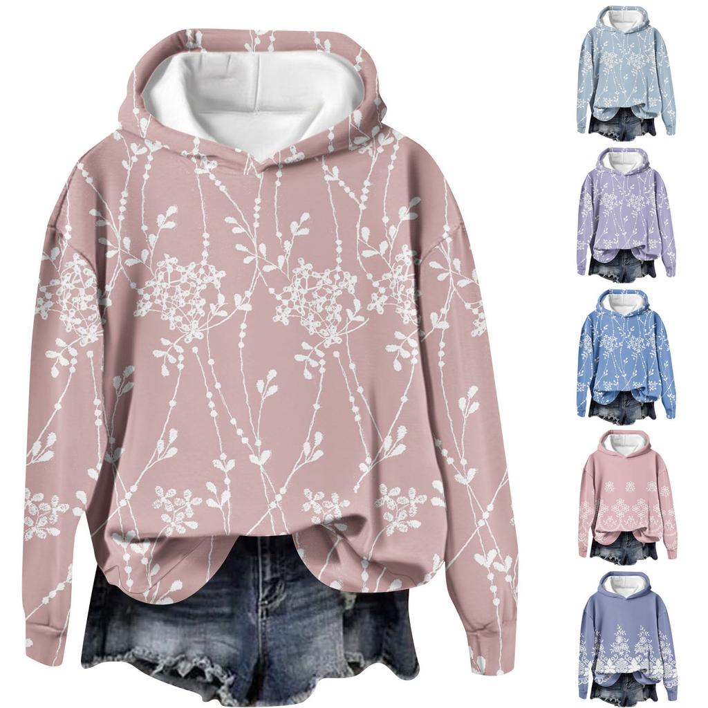 Женская модная повседневная толстовка с длинными рукавами и капюшоном с принтом, свободная толстовка с длинными рукавами