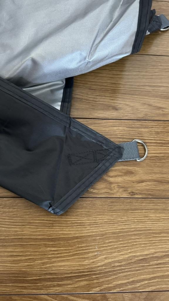 Края каждого угла навеса от солнца укреплены швейной нитью для дополнительной прочности.