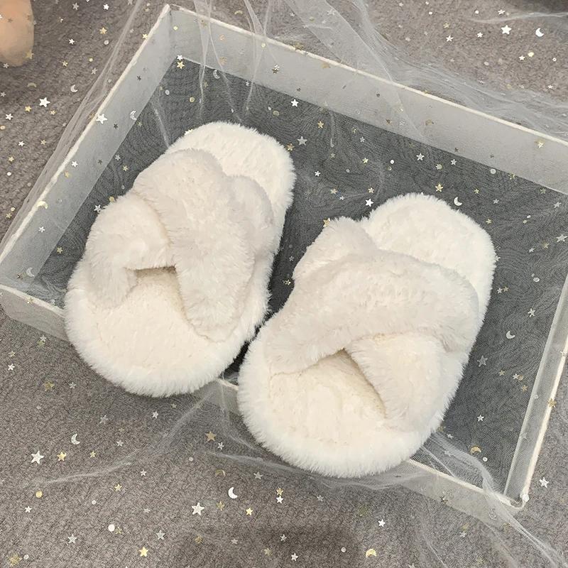 Новые зимние детские тапочки, мягкие, пушистые, для девочек, открытые тапочки на плоской подошве, теплые, универсальные, детские повседневные туфли, нескользящие, модные, простые