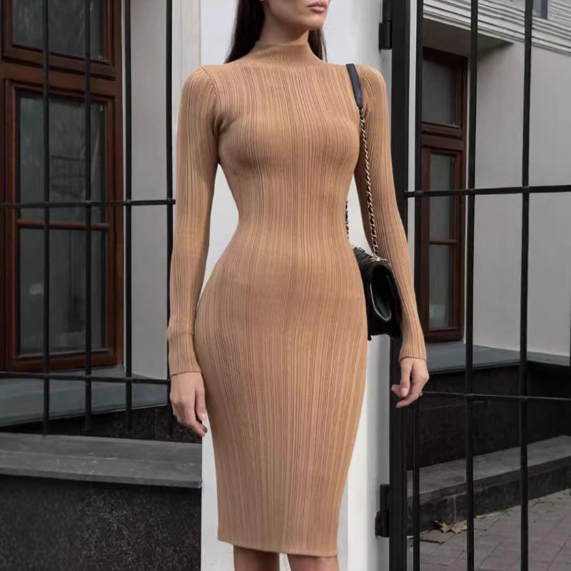 Длинный рукав трикотажное платье женское осень зима винтажное однотонное облегающее вечернее платье элегантные водолазки свитер платья