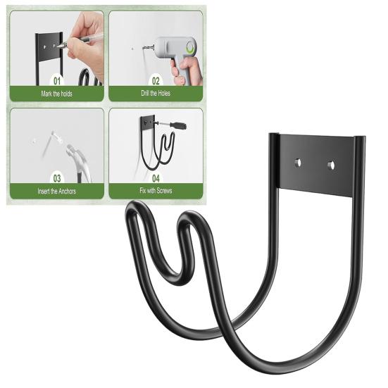 В комплект входит крючок для шланга и другие аксессуары, что упрощает установку и использование, надежно фиксируя держатель на месте для удобного доступа.