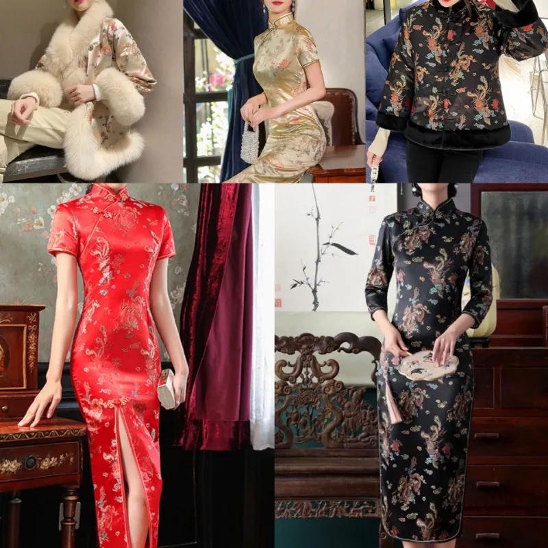 Китайский стиль 100x114 см парча узор дракон феникс ткани дамаск для шитья чонсам и кимоно материал рукоделие своими руками