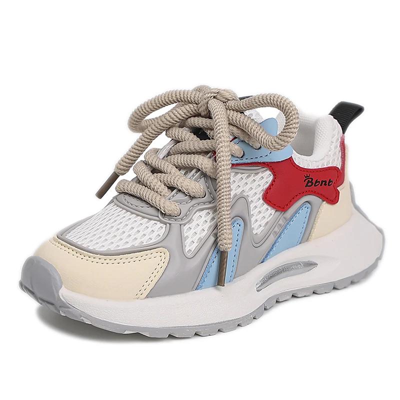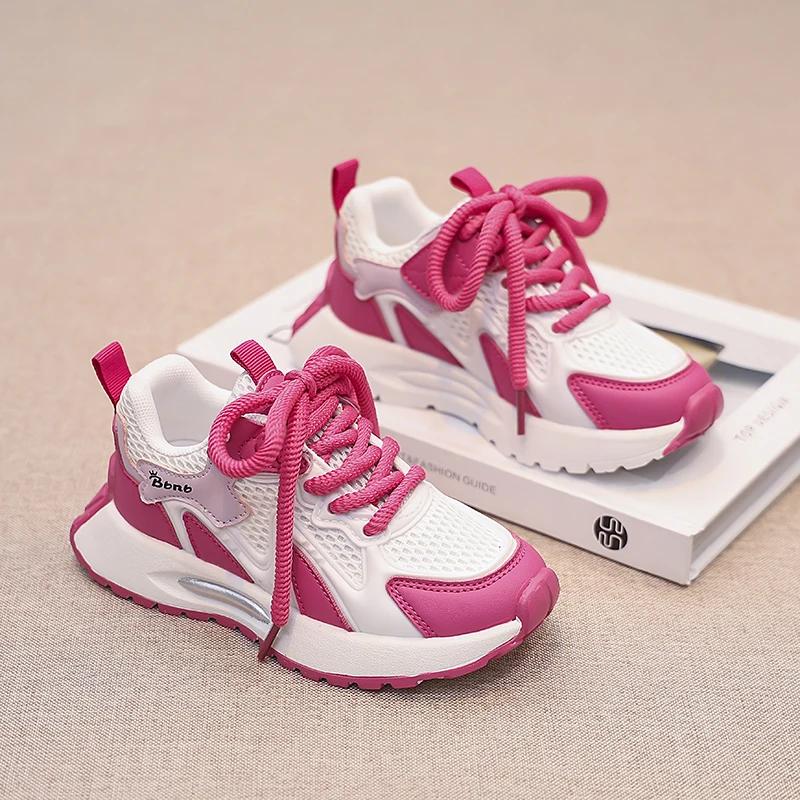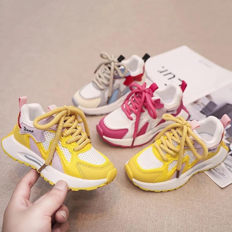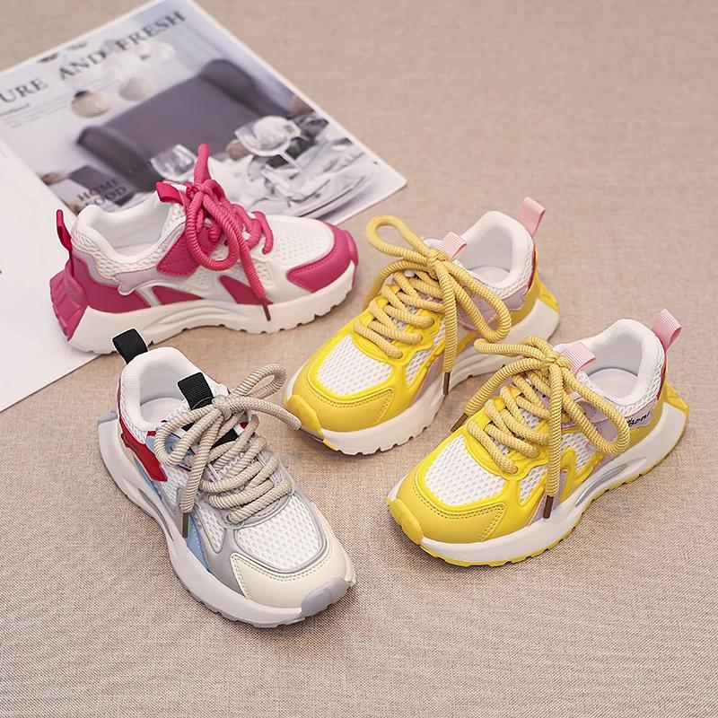 Спортивная обувь для мальчиков и девочек, дышащая сетчатая обувь 2024 года, новые модные кроссовки для студентов, толстая мягкая подошва, детские кроссовки цвета конфет