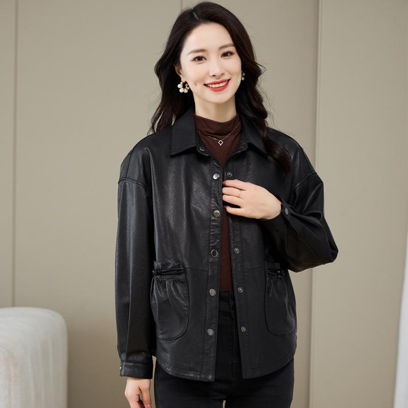 Куртка из натуральной кожи женская короткая весна и осень новая куртка из овчины для мам среднего возраста повседневное пальто