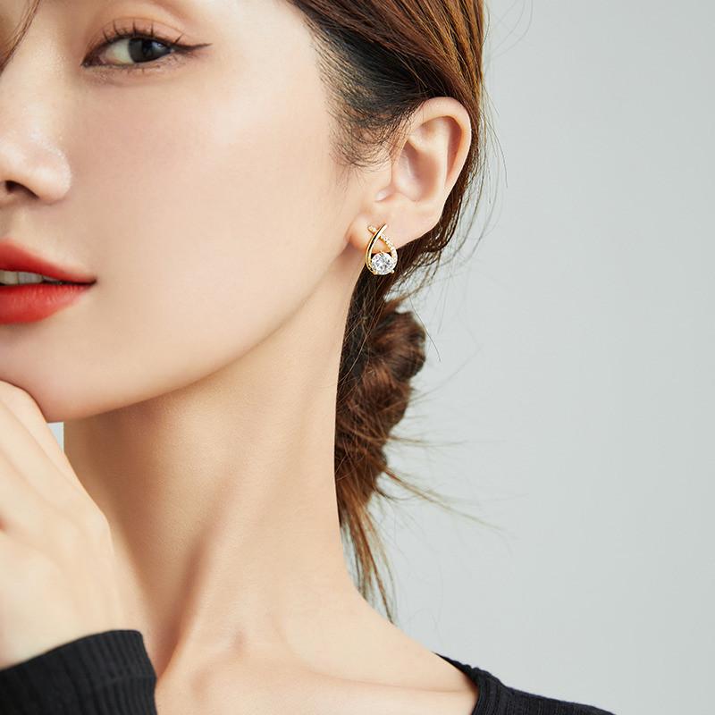 14-каратное настоящее золотое покрытие, корейский новый дизайн, модные ювелирные изделия, серьги-кресты с цирконием класса ААА, изысканные женские повседневные рабочие аксессуары