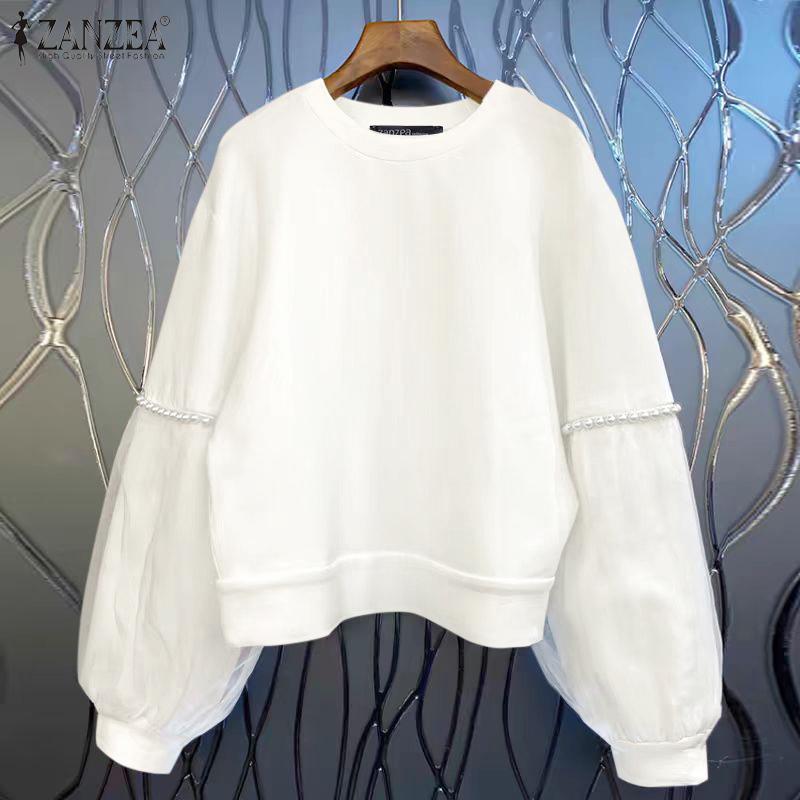 ZANZEA Женская мода круглый вырез длинный рукав жемчужный пэчворк пуловер толстовки