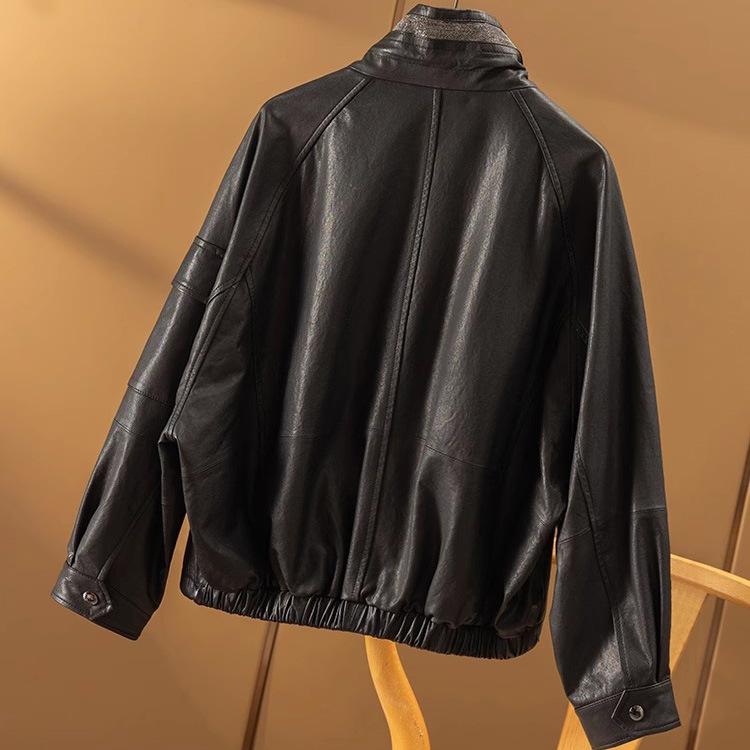 Женская куртка из овчины в стиле ретро с рукавами «летучая мышь», натуральная кожаная куртка