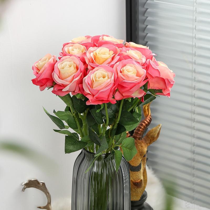 12 шт. искусственный шелковый цветок розы поддельные цветы для свадебного букета вечерние украшения дома