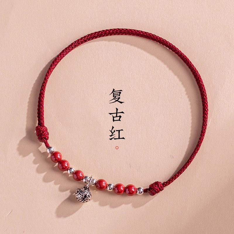 Красная веревка, плетеная на год рождения, женская цепочка на лодыжку, старинный колокольчик, летняя женская цепочка на лодыжку