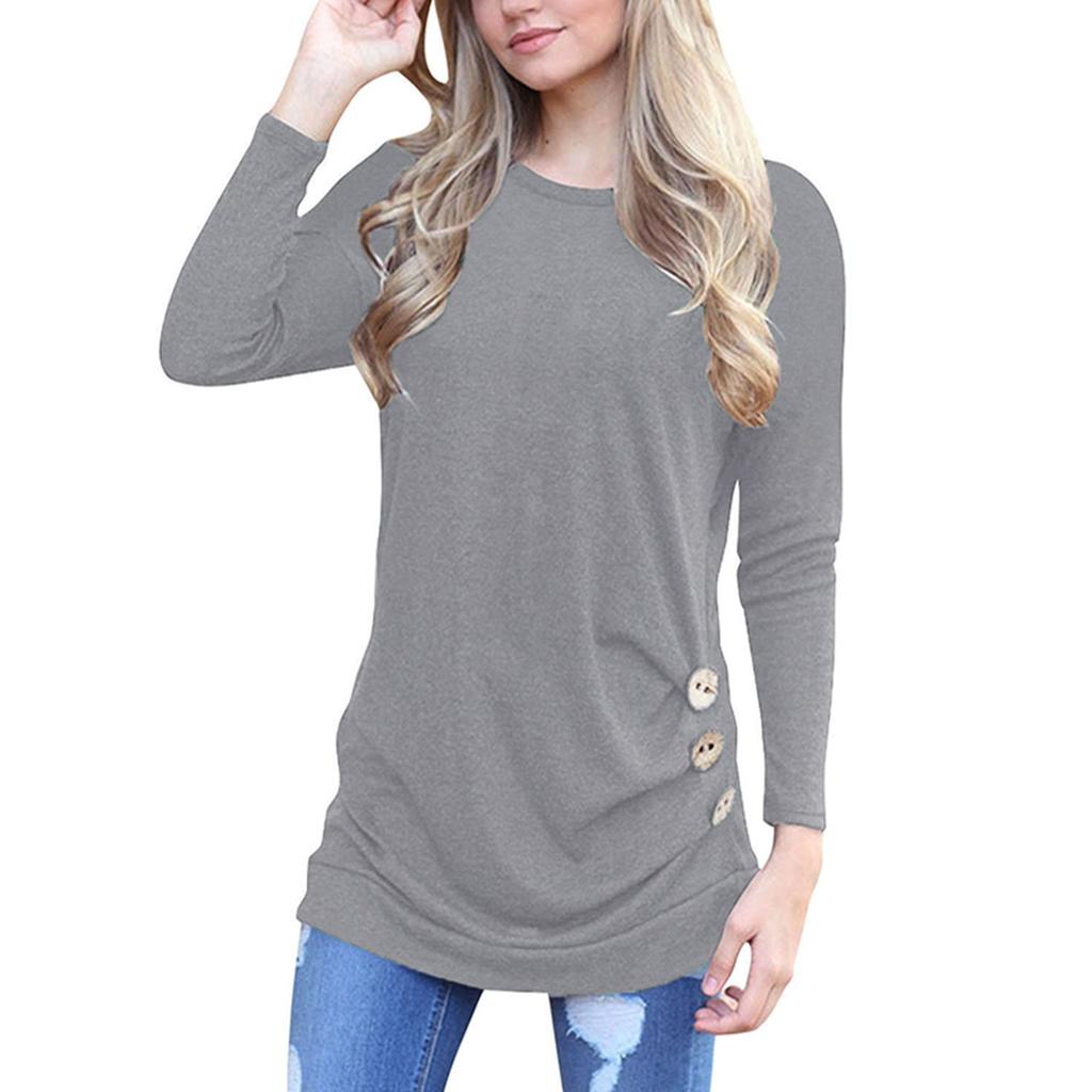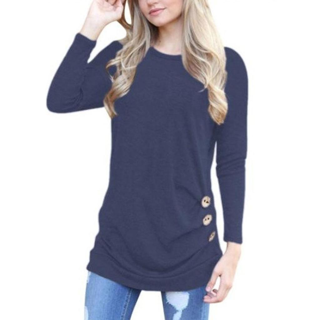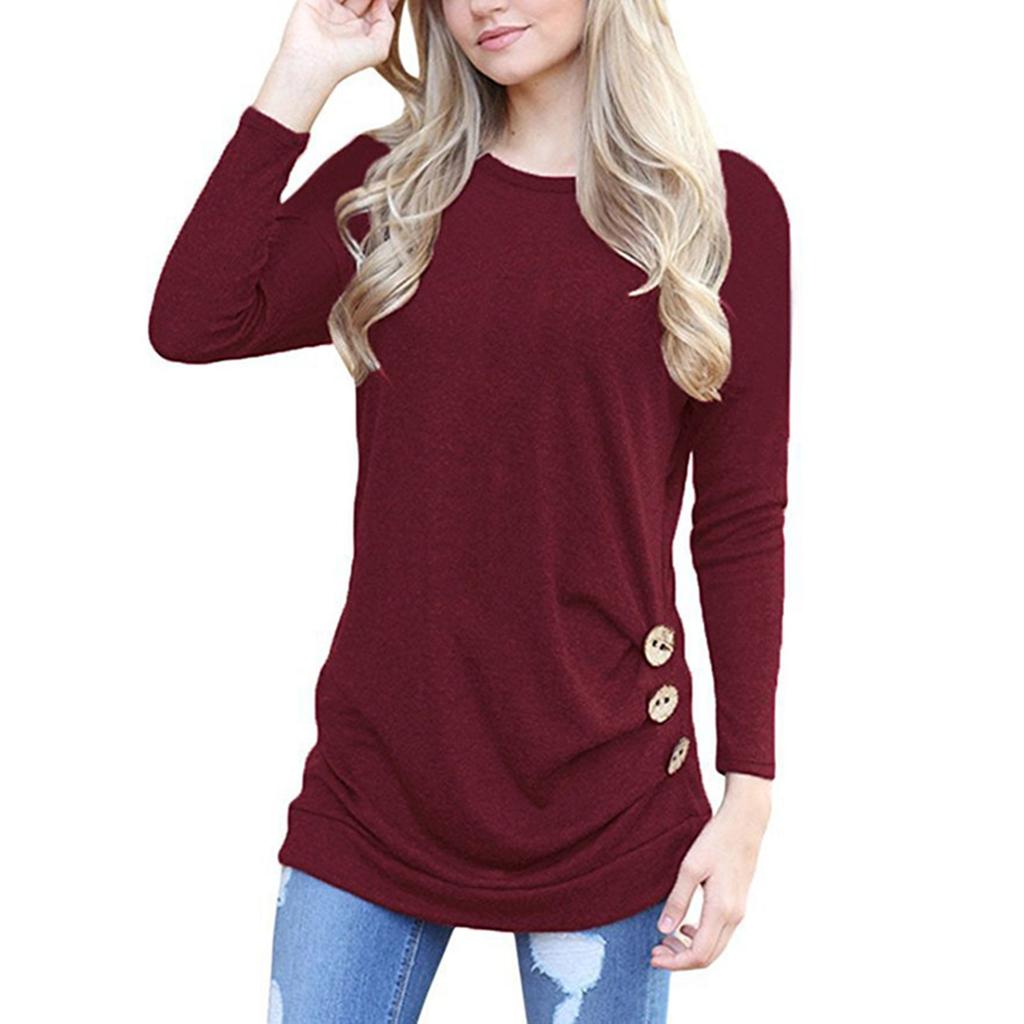 Рубашки с длинным рукавом для женщин, легкие свитера с круглым вырезом на пуговицах, туники, топы с круглым вырезом