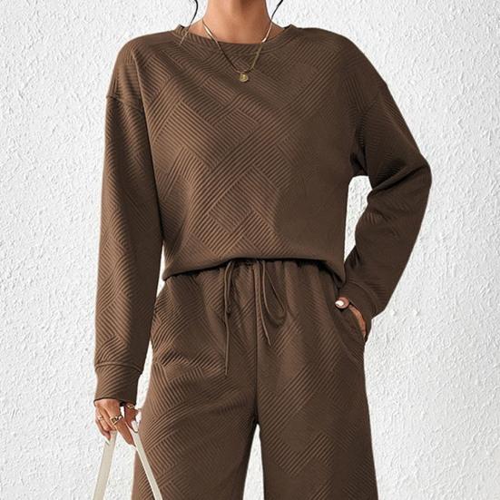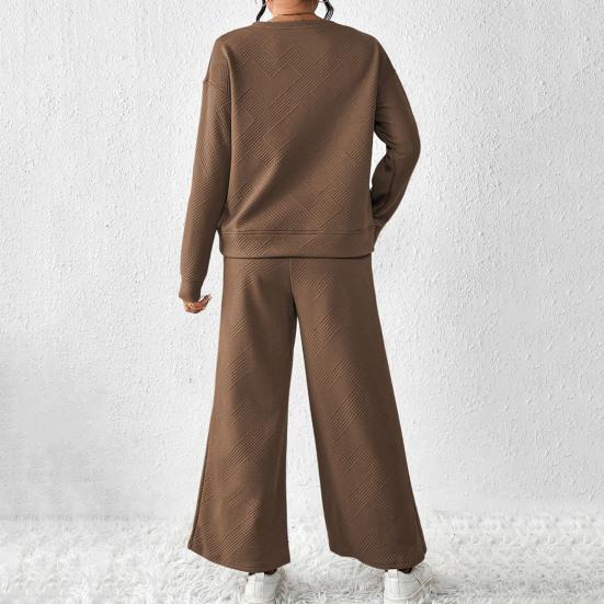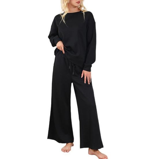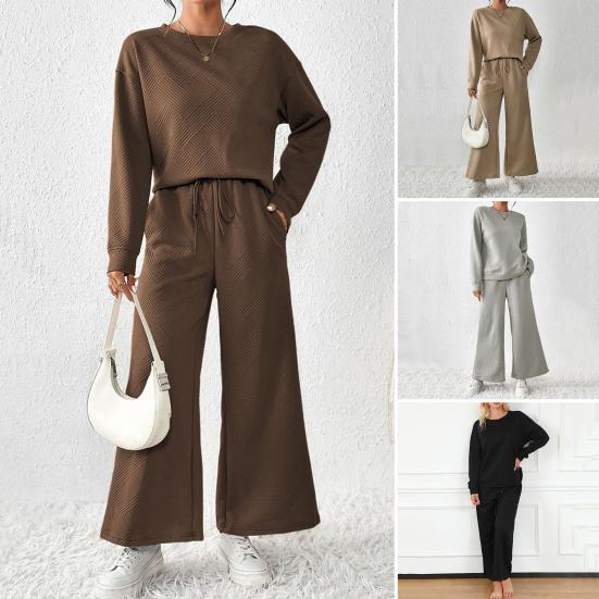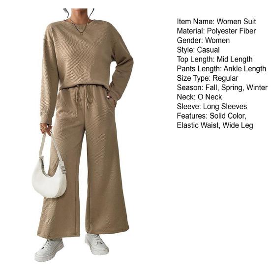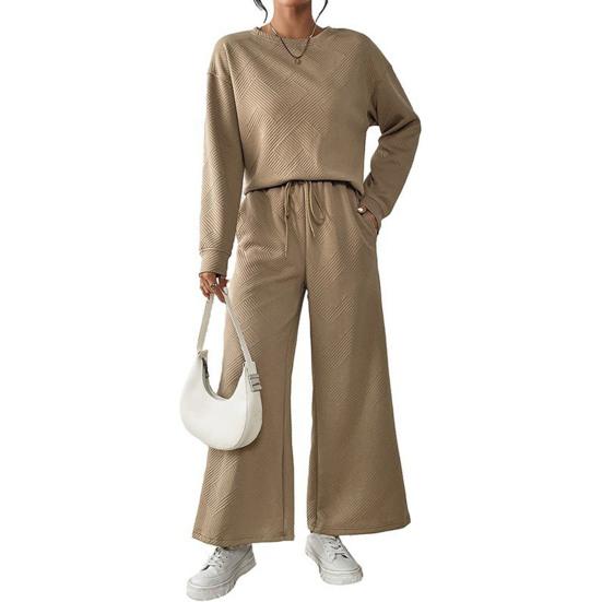Удобный комплект из двух предметов: Наслаждайтесь свободным кроем и легкостью движений в этом комплекте из двух предметов, включающем топ с круглым вырезом, длинными рукавами и широкие брюки.. Свободный крой подходит для разных типов телосложения, обеспечивая комфорт в течение всего дня.