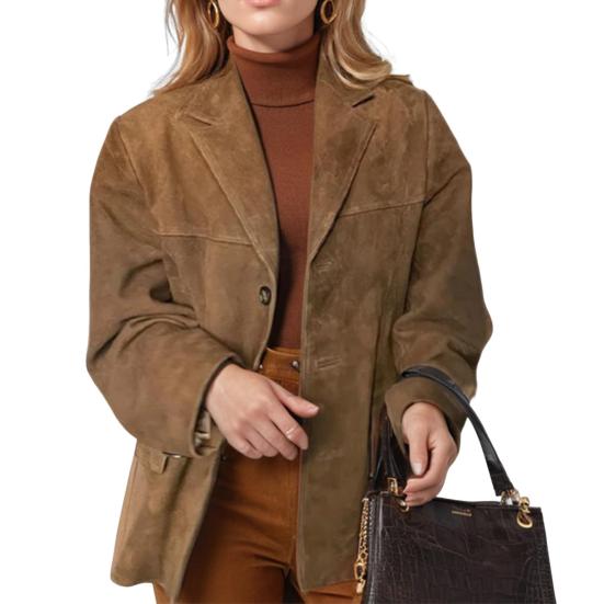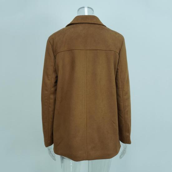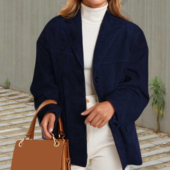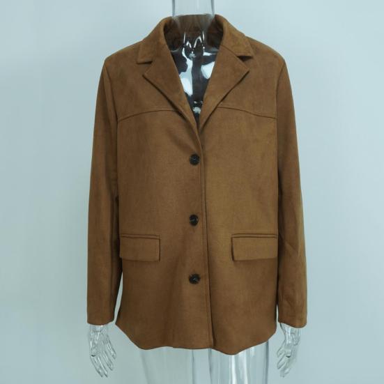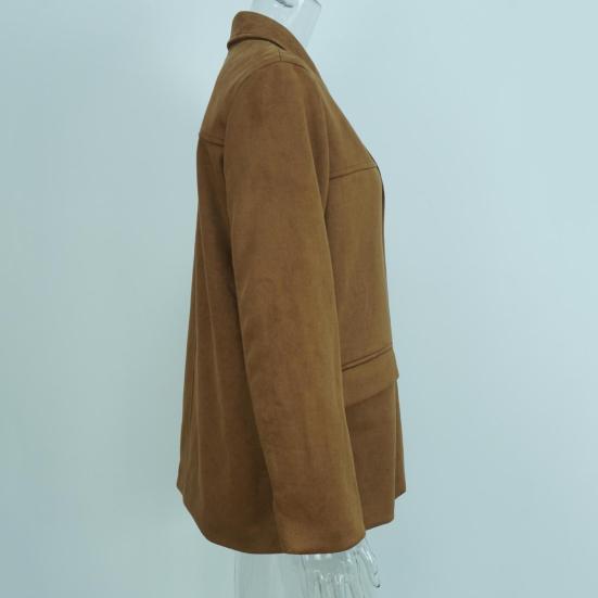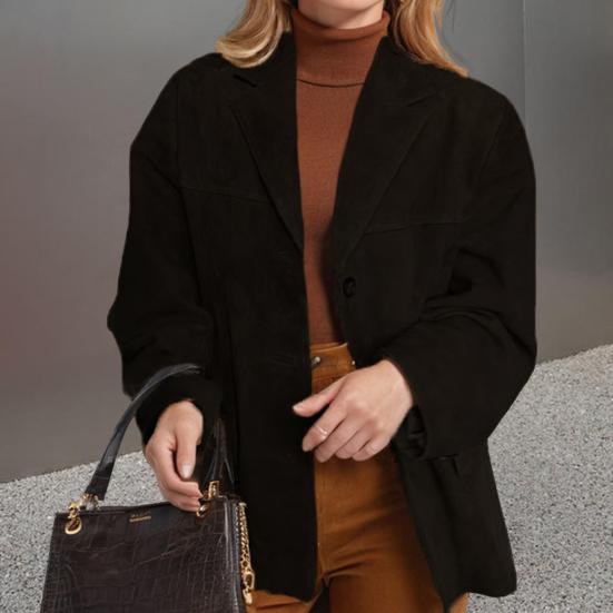 Эта женская куртка станет стильным дополнением к вашему гардеробу.. Изготовлен из мягкого полиэфирного волокна и искусственной оленьей кожи, обеспечивает комфорт и элегантность в любое время года.. Однотонный дизайн с лацканами и застежкой на одну пуговицу излучает изысканность..